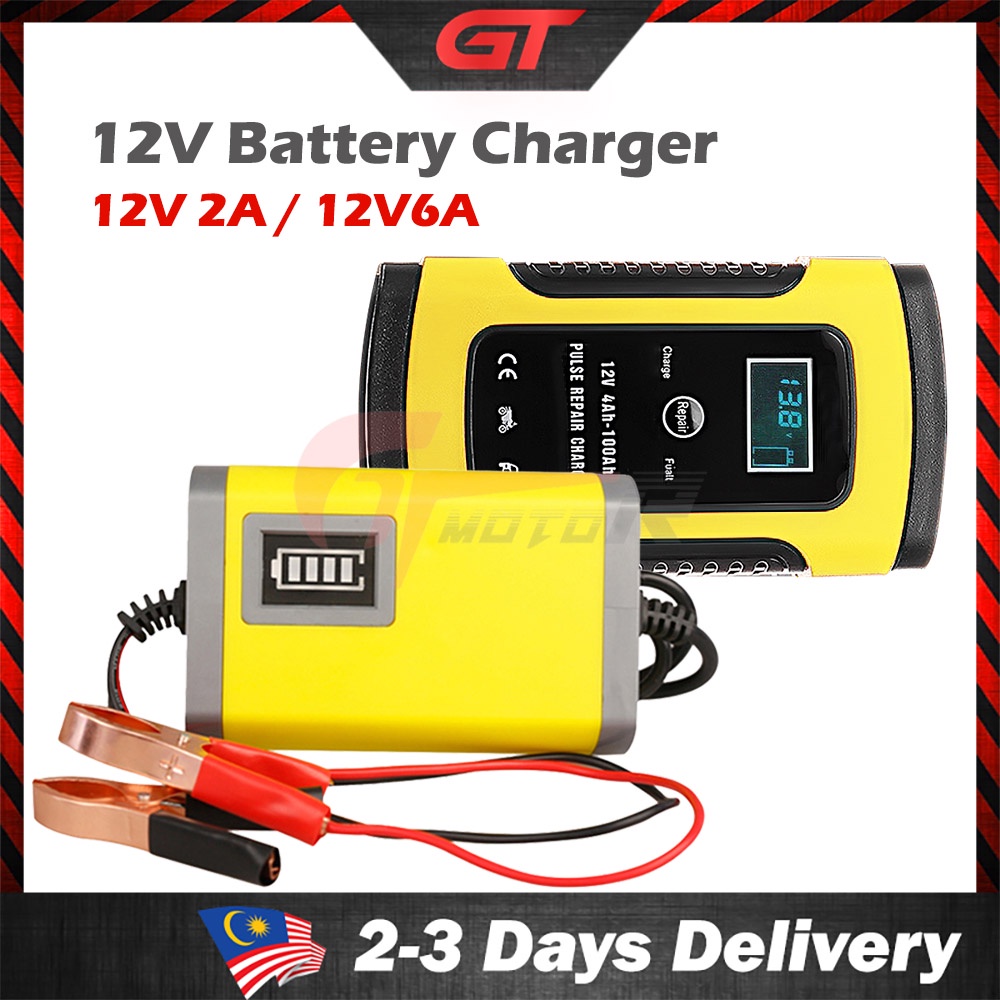Readystock Malaysia Pengecas Charger Bateri Kereta Motosikal 12v 6a Plug Pin Malaysia Fast Charging Smart Cut Off Shopee Malaysia